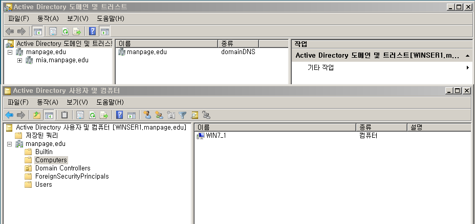 - manpage AD서버에 연결된 호스트(Win7_1)