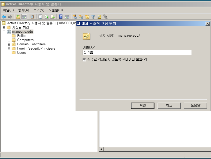 - 도메인 내에서 각 자원을 분류하는 것으로 OU를 AD의 Container(컨테이너)라고 부르기도 한다.