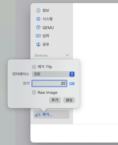 - 설정을 하지 않으면 기본 5GB로 설정되기 때문에 용량부족으로 설치할 수 없습니다.