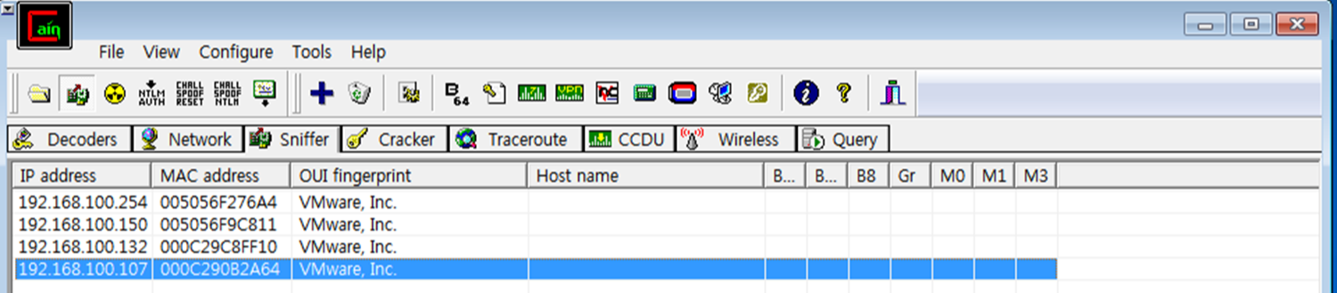 [+] 네트워크 패킷 스니핑: Cain & Abel은 네트워크 패킷을 캡처하고 분석할 수 있습니다. 이를 통해 네트워크 상에서 전송되는 데이터를 엿볼 수 있으며, 이를 이용해 암호화되지 않은 패스워드나 기타 민감한 정보를 탈취할 수 있습니다.