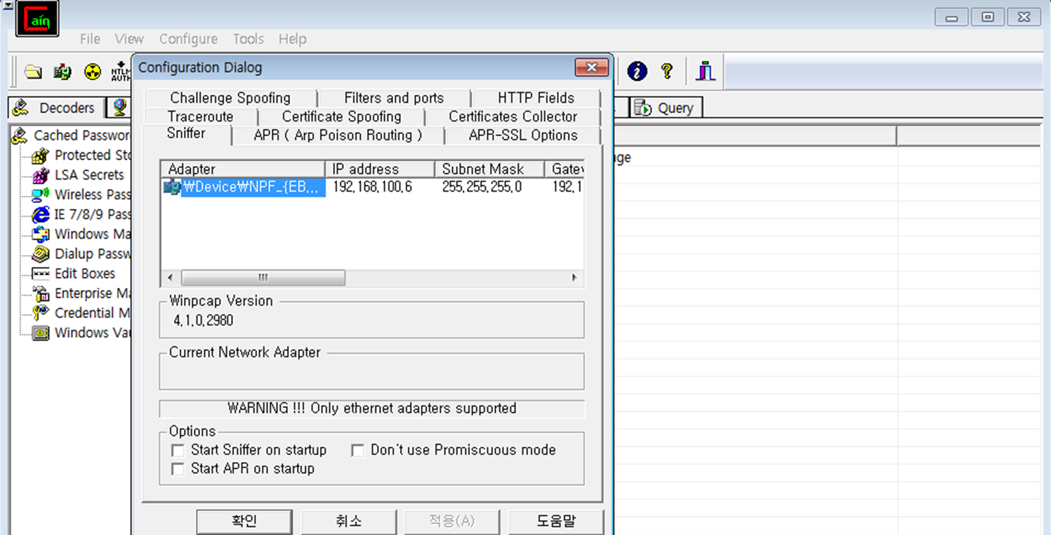 - cain 실행시 "관리자 권한으로 실행"
