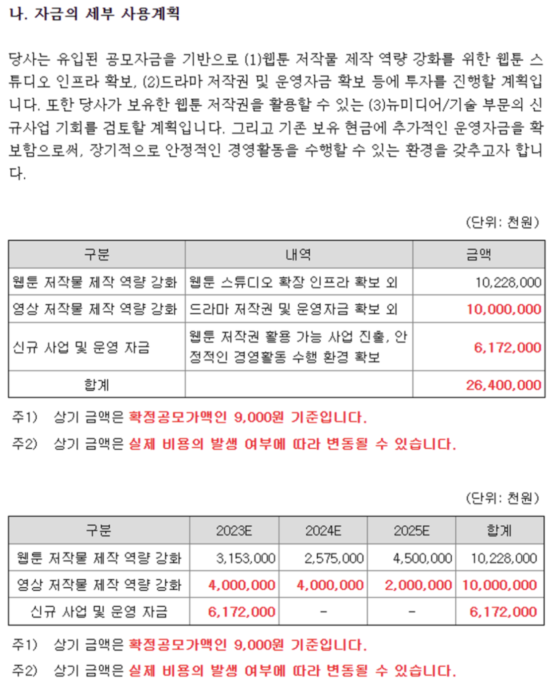 운영자금으로 모두 사용될 예정으로 세부 내용은 아래와 같습니다.