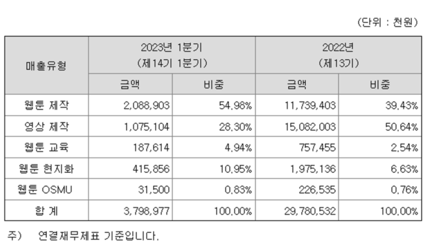 웹툰 제작 및 권리를 부여받아 대형 플랫폼(네이버, 카카오, 스튜디오드래건 등)에 웹툰이나 웹툰 기반 영상을 납품하는 기업