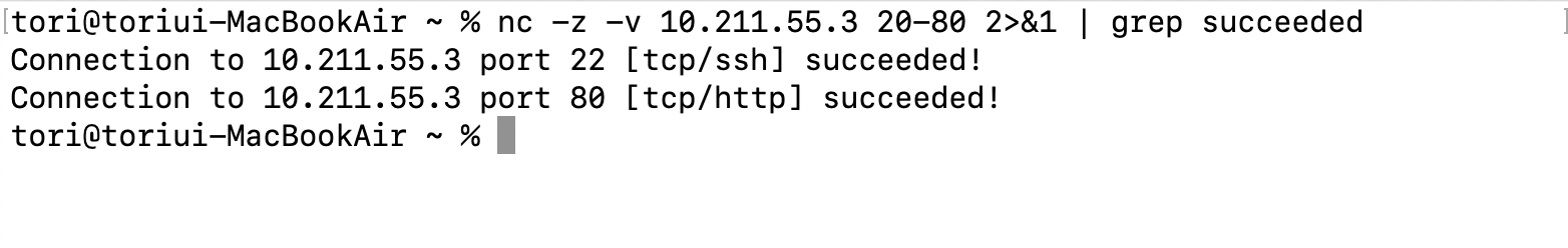 nc -z -v [IP 주소] 20-80 2>&1 | grep succeeded