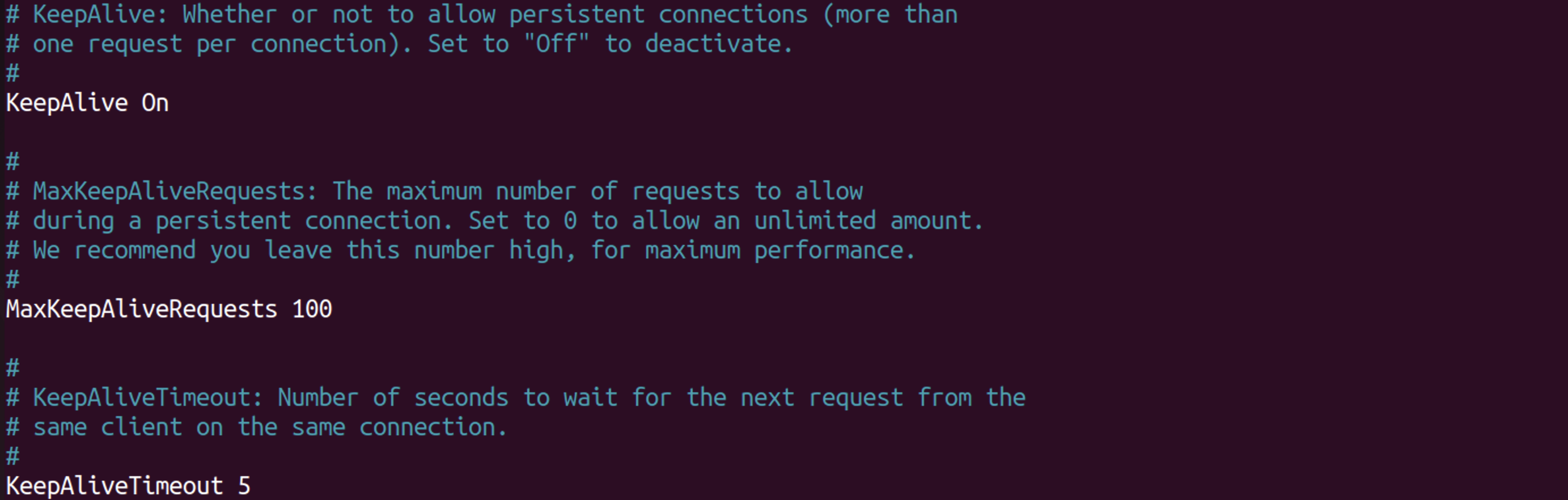 - Keep-Alive로 유지할 최대 요청 수와 타임아웃 설정