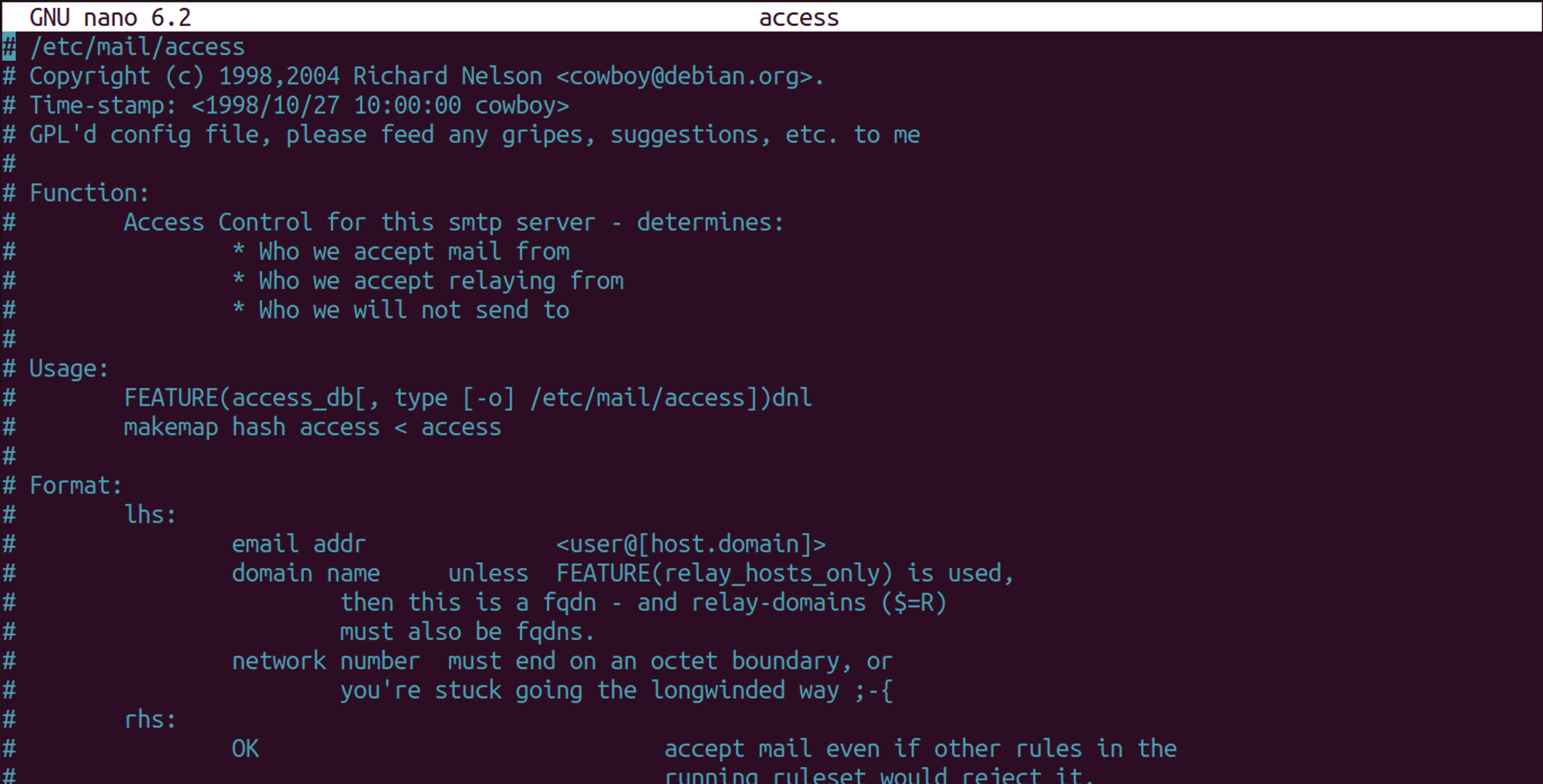 # /etc/mail/access