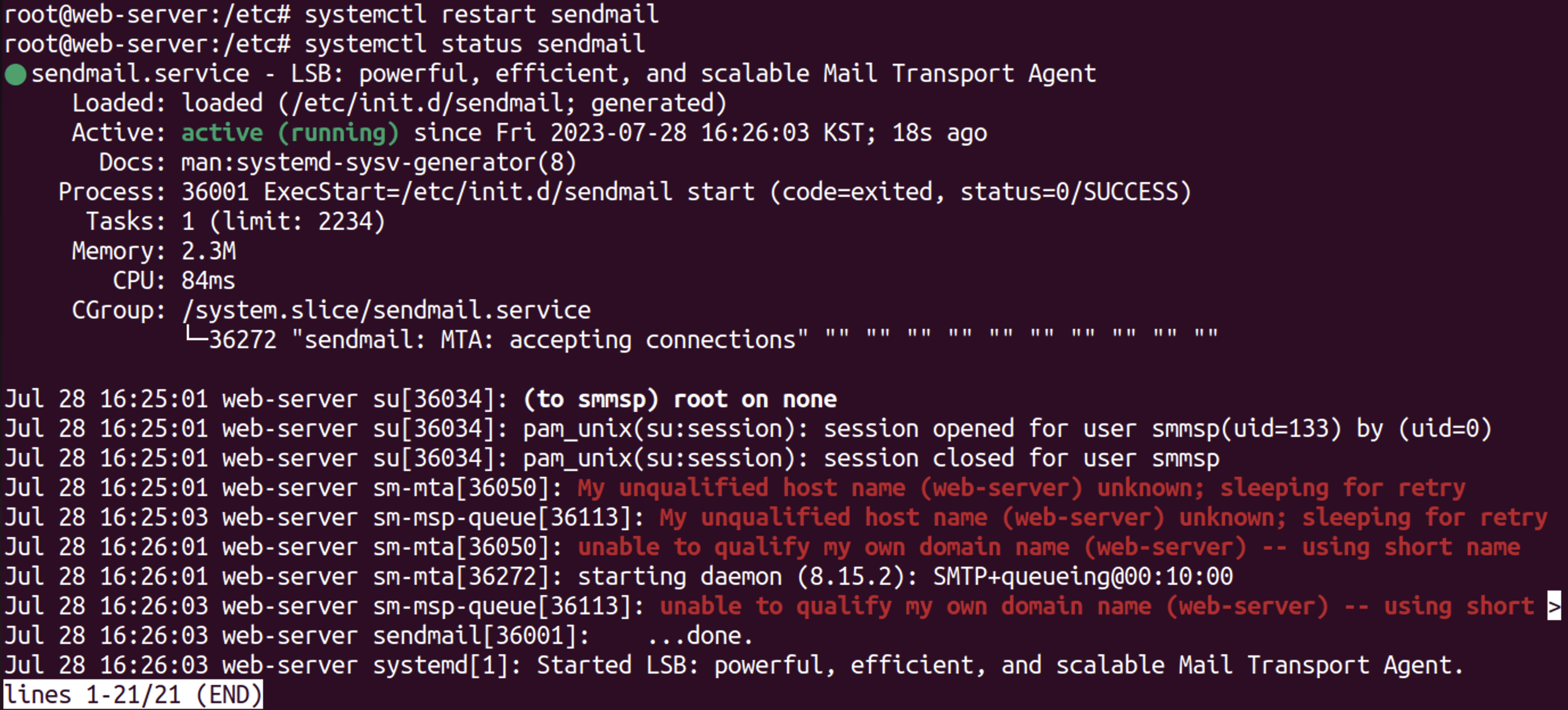 - systemctl status sendmail