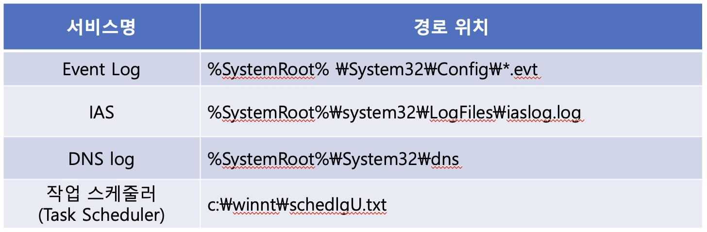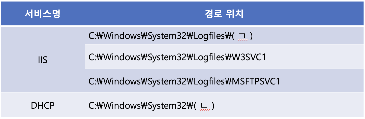 1. windows에서 로그 파일 저장 경로에 대한 설명이다. 빈칸을 채우시오