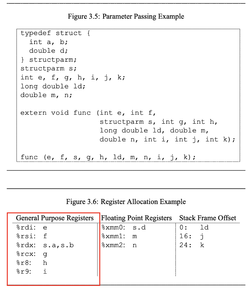 - 리눅스 64비트 환경에서는 'System V AMD64 ABI' 호출 규약