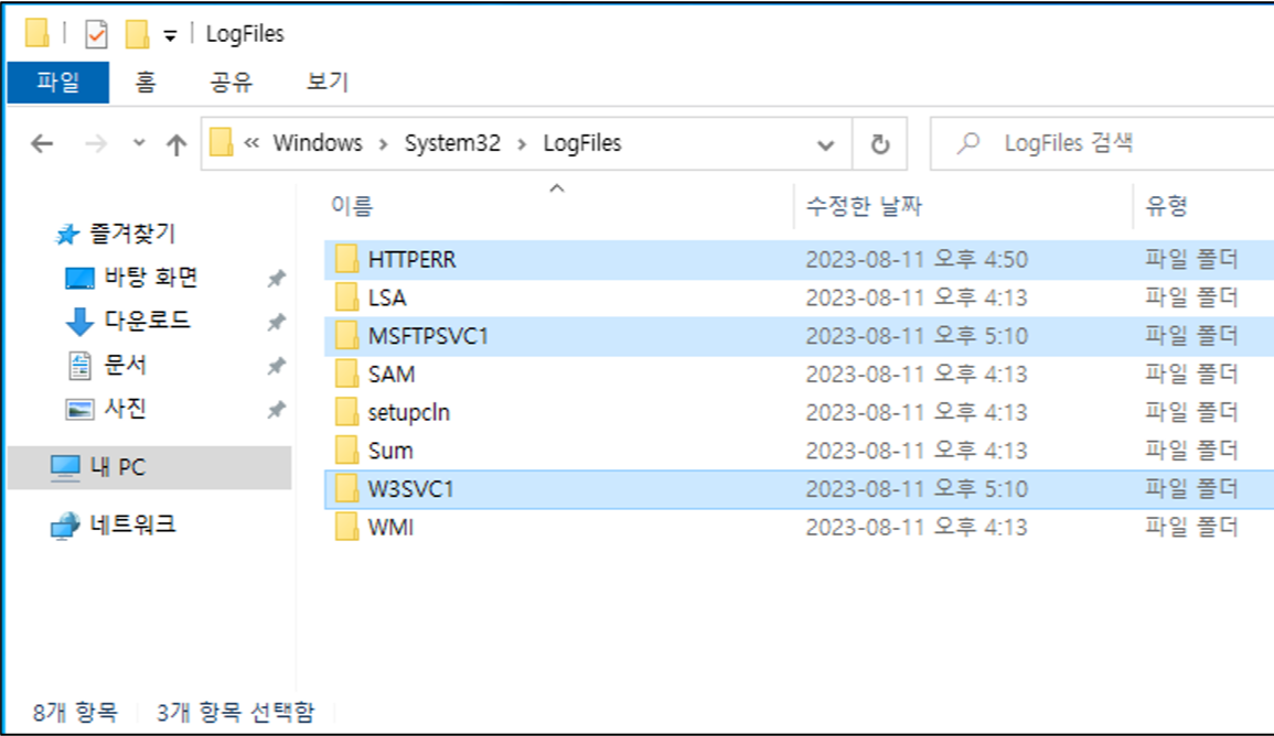 - windows server에 IIS(인터넷 정보 시스템) 설치 시 아래와 같은 IIS관련 파일이 생성되는 것을 확인할 수 있습니다.