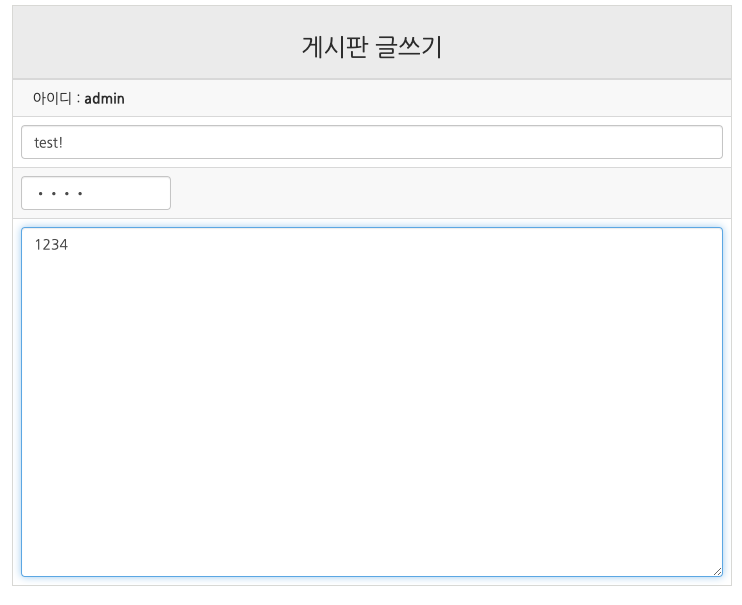 코드를 보시면, 작성자의 이름의 경우 사용자의 ID로 출력될 수 있도록 로그인시 확인된 세션 값을 기입하였습니다.