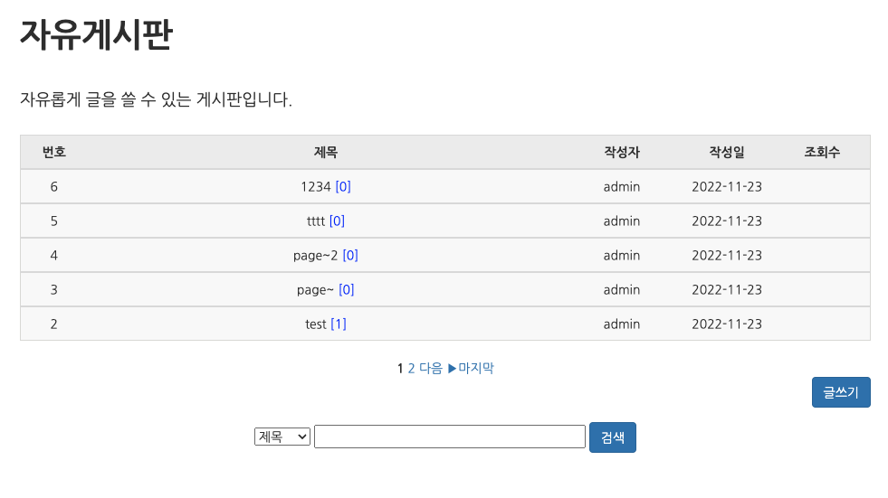 <h1><b>자유게시판</b></h1><br>