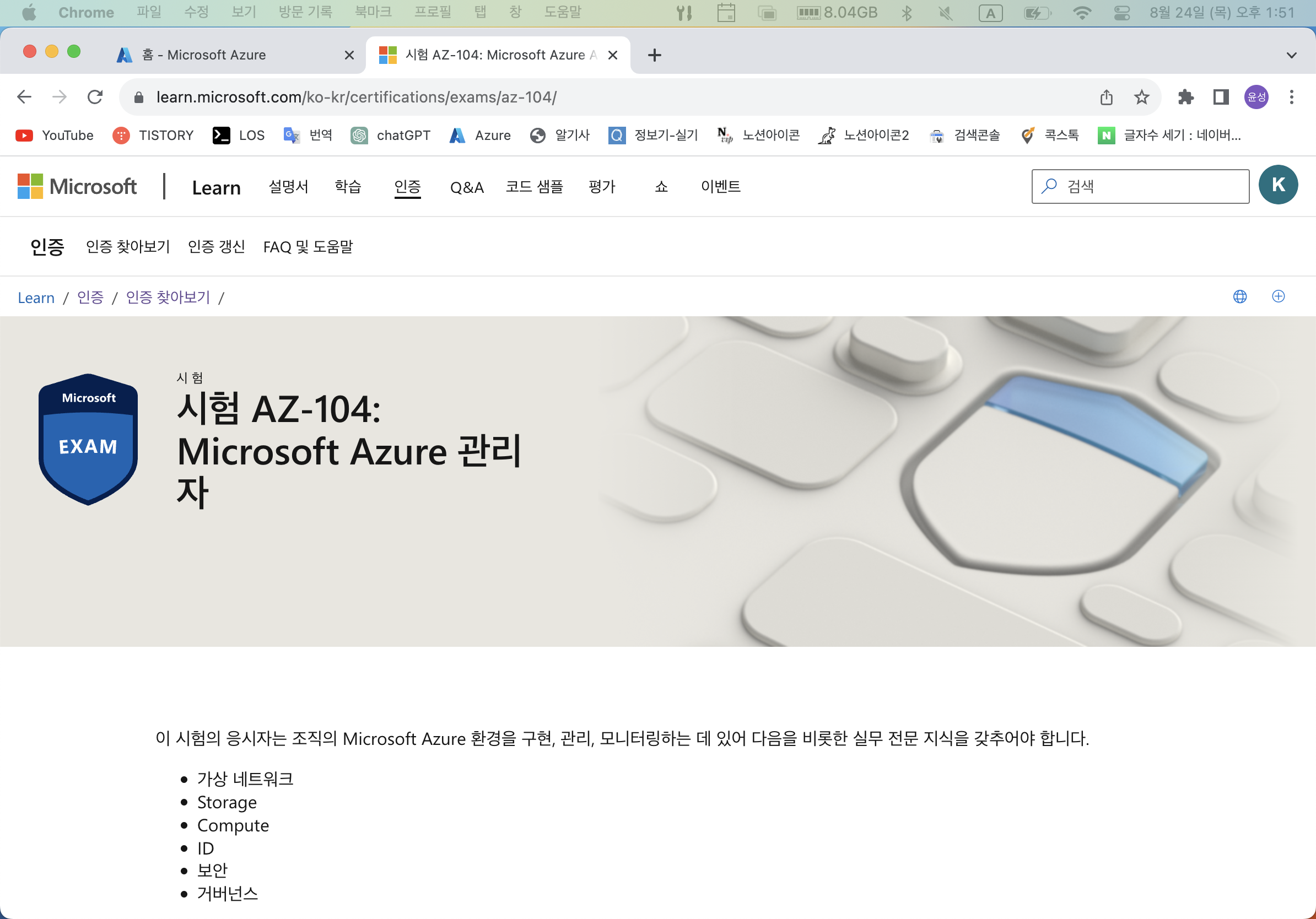 - 마소 -> Learn -> 인증 - 관리자 -> AZ-104 접수