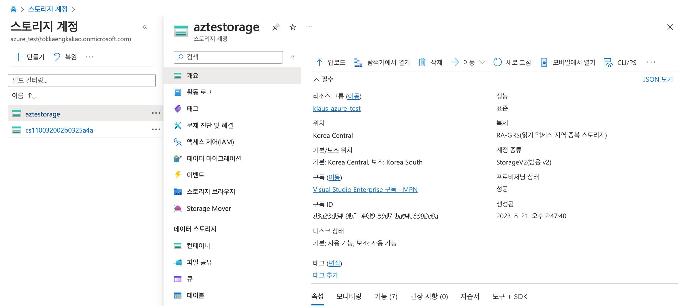 [+] Azure 스토리지 계정