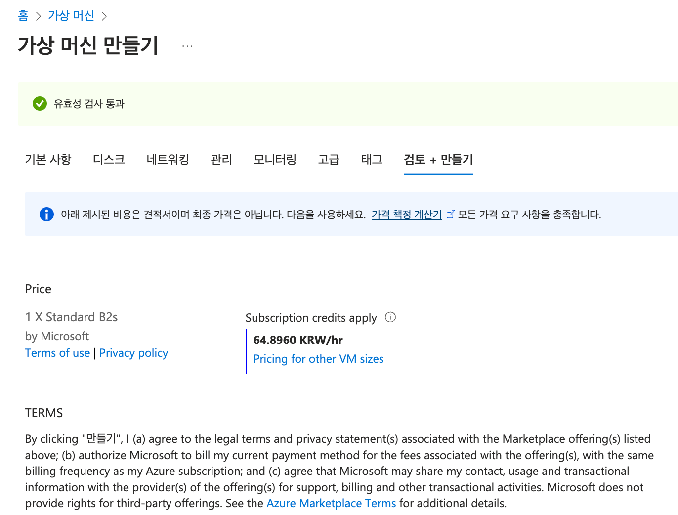 - 구성 시 비용 청구는 컴퓨팅과 스토리지 비용으로 나뉘며 가상머신만 중지할 경우 별도의 Disk 사용료가 부과될 수 있어 주의