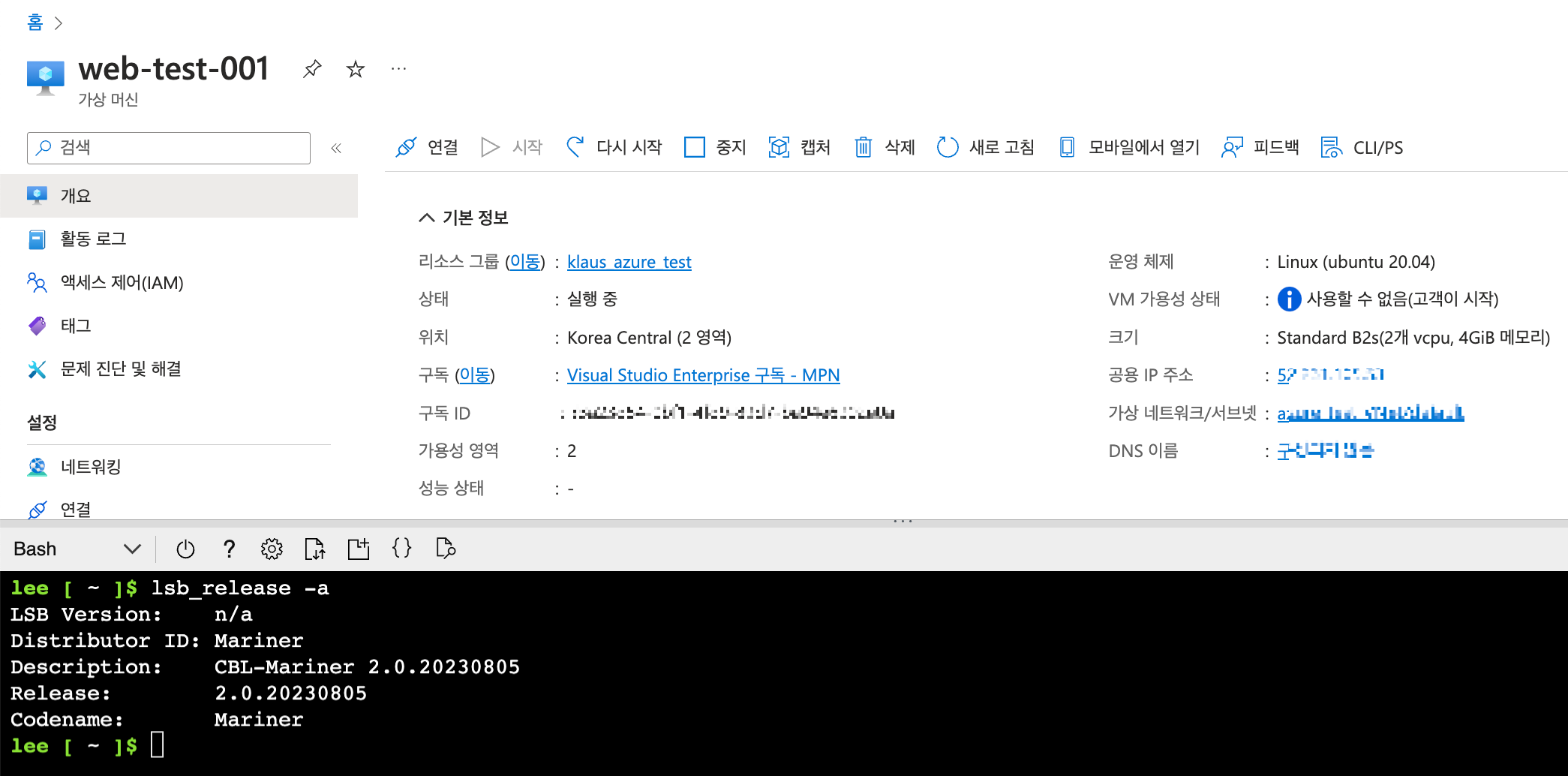 - Azure CLI를 통해 연결하거나 SSH(22) 연결 등 여러 방식으로 연결가능