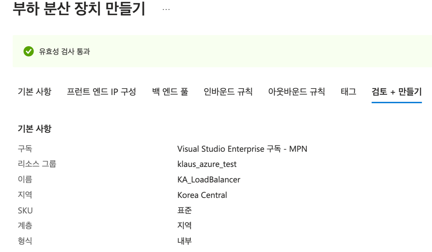 - 프런트엔드 IP 구성: 로드 밸런서의 프런트엔드 IP 주소 및 프로토콜을 구성(로드 밸런서로 들어오는 트래픽)