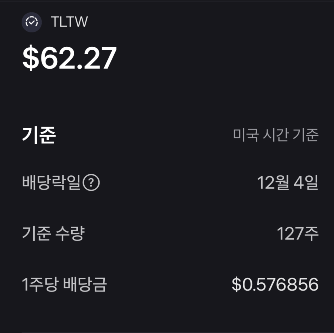 - 배당주의 경우 TLTW 40% , TLT 10%, TMF 10% O 30% 비중으로 투자하고 배당은 재투자하는 방식으로 진행 중