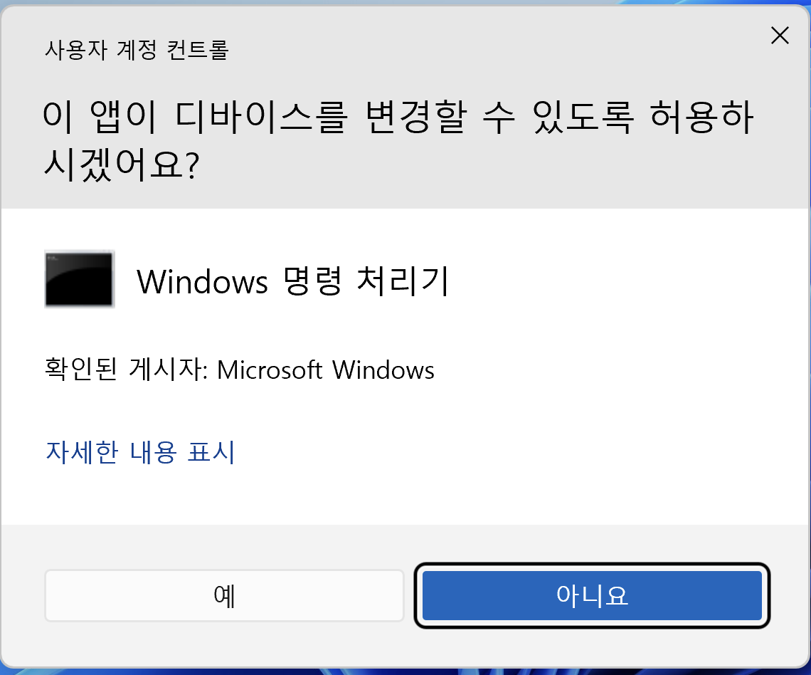 13. 윈도우 사용자 계정 컨트롤 팝업 창