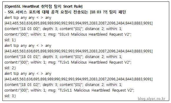 * 아래의 Snort 탐지 룰(rule)을 참고하여 침입탐지시스템 및 침입차단 시스템에 패턴 업데이트 적용 권고