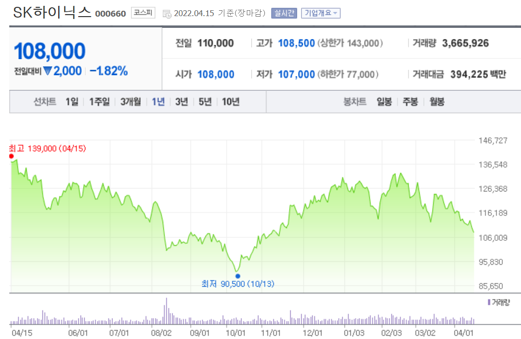 국내 시총 3위이자 국내 반도체 관련주, 국민주라고 할 수 있는 SK하이닉스에 대해 알아보려고 한다.