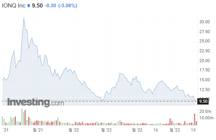 미래만 보고 투자하는 기업이라고 생각하는데 지금 현재는 적자 상태이며 추후 상용화를 몇 년 내에 할 지도 미지수 이기 때문에 투자하는데 각별한 주의가 필요하다. 실제로 아이온큐는 지난해 1억 620만 달러의 순손실이 발생한 것으로 발표하였다. 이와 관련해 내년까지도 손실이 이어질 수 있다는 분석도 나오고 있는 지금 투자하는데 멀리 보고 가면 좋을 듯한 기업이다. 매력을 느낀다면 지금 시점의 10달러 미만의 가격에서도 좋을 듯 한 것은 사실이다. 해당 금액은 연초보다 40% 이상 하락한 가격이기 때문이다. 52주 변동폭 역시 약 7달러 ~ 35달러 선을 보고 있는 상태에서 현 가격은 향후 미래를 본다면 아주 좋은 수치라고 생각이 된다.