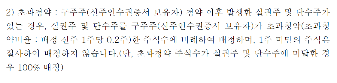 마지막으로 확인할 것은 초과청약이다. 청약할 할 구주주라면 꼭 참고하기~~~
