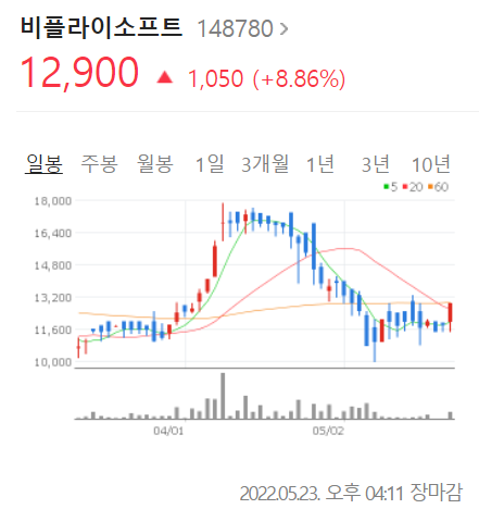 확실히 주식시장이 불안정하기에 기술주인 비플라이소프트 역시 공모가보다 낮게 횡보 중이다.