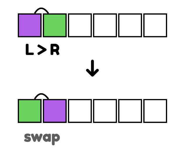 2).왼쪽이 오른쪽보다 크면 교환