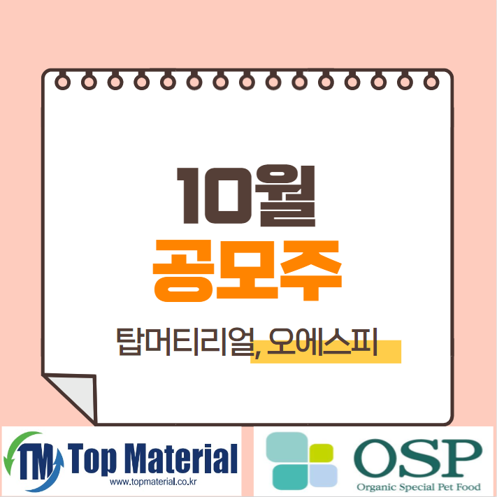 금일까지 공모주 청약을 진행하는 탑머티리얼과 오에스피에 대해 알아보려고 합니다.
