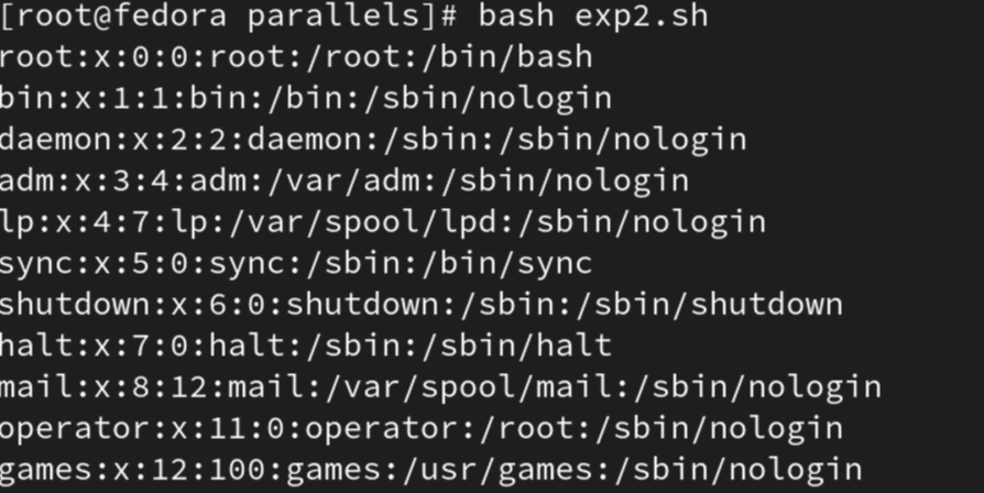 exp1.sh가(타겟머신) 들어가고, exp2.sh를 실행시킬수 있다.