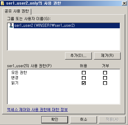 - ser1_user2폴더는 보이기는 하지만 폴더 접근 불가