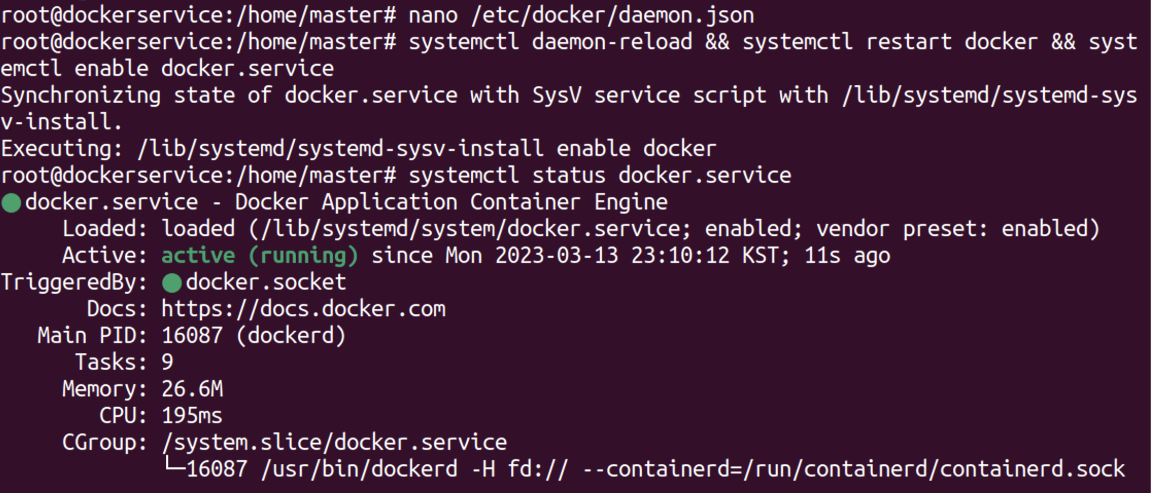 systemctl daemon-reload && systemctl restart docker && systemctl enable docker.service
