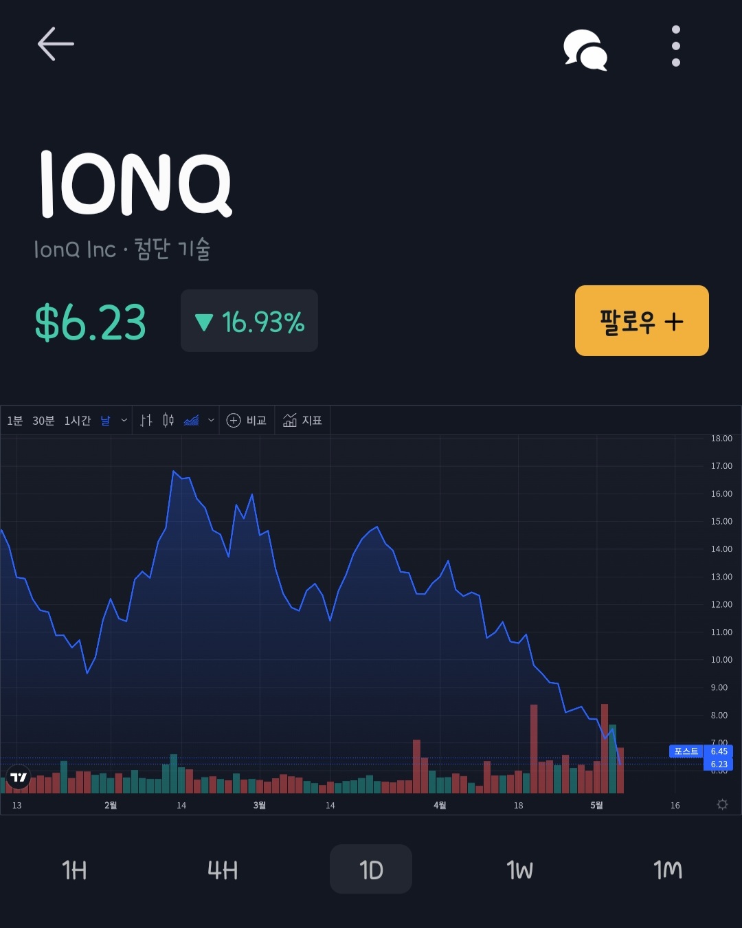 5월 16일에 아이온큐(IONQ)에서 실적 발표 및 진행 상황을 보고 할 예정이라고 알려온 상태이다.