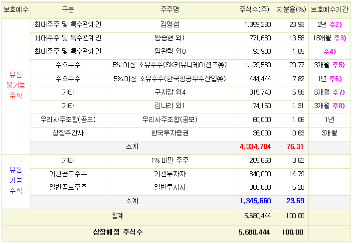 이번 기관투자자 확약 7.07%를 적용하면 22.64%로 유통가능금액 321억 원이다.