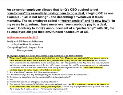 3/3 The press release and call were a charade of made-up words like "algorithmic qubits" and bogus claims of 130,000X increase in compute power since last quarter. Real companies aren't shrill in emphasizing that their "customers" signed a "paid contract" - vs. what other kind?